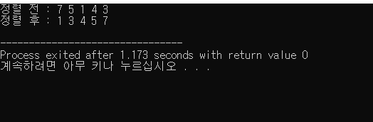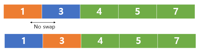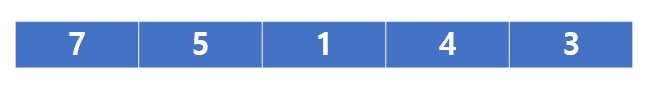 다음으로 7과 그 이후 값들 중 가장 작은 값인 5의 위치를 바꿔준다.