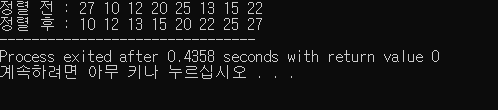 위와 같은 과정을 거치면 배열이 위와 같이 오름차순으로 정렬된다.