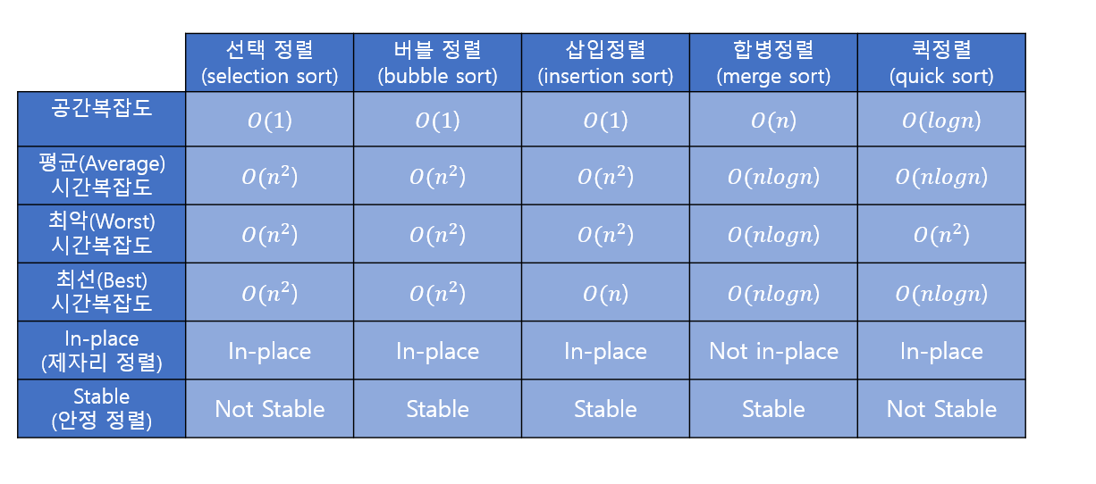 이는 아래 정렬들을 비교하면서 더 자세히 알아보도록 하자.
