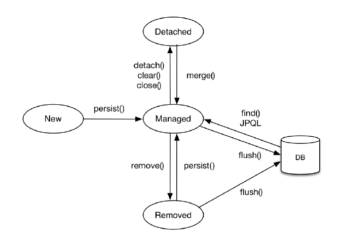 - 영속(managed) 상태 : 영속성 컨텍스트에 저장된 상태