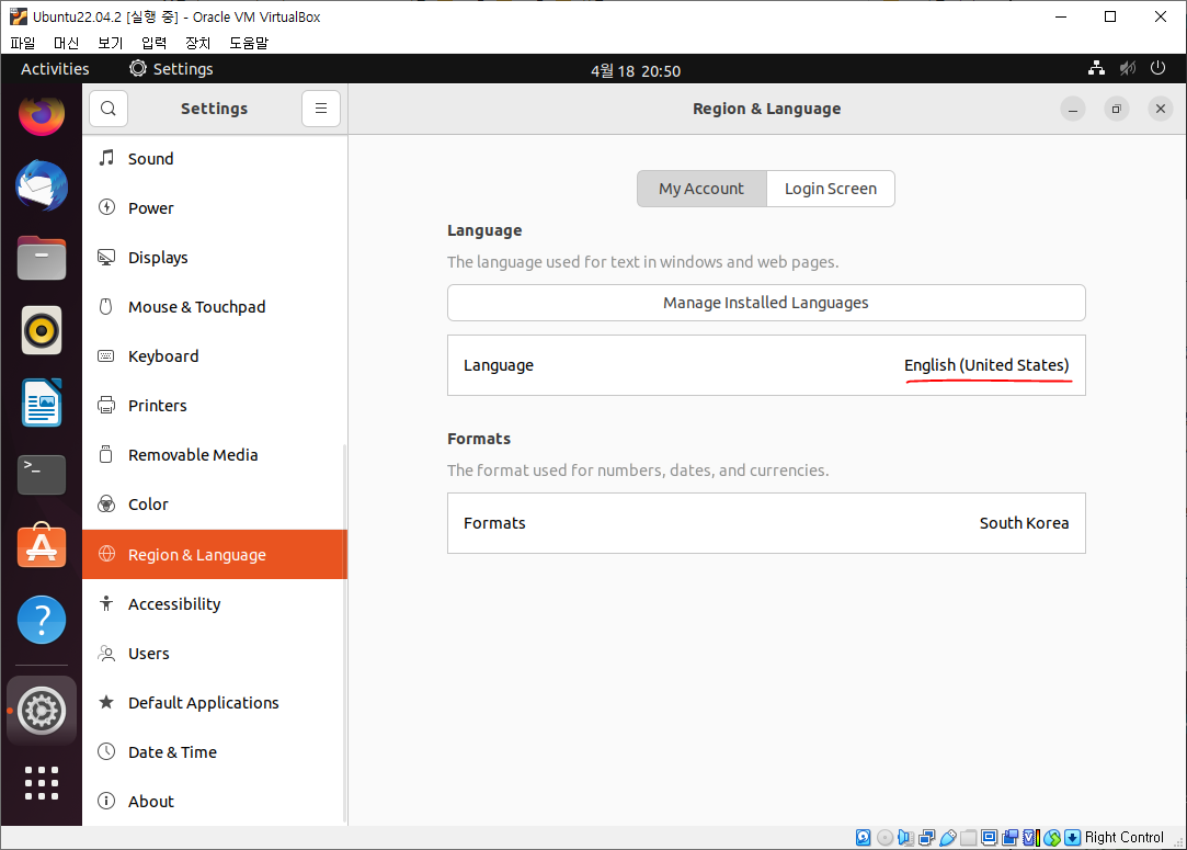 2. Region & Language 탭을 누르고 Language를 English(United States)에서 'English(Canada)'로 바꿔준다.