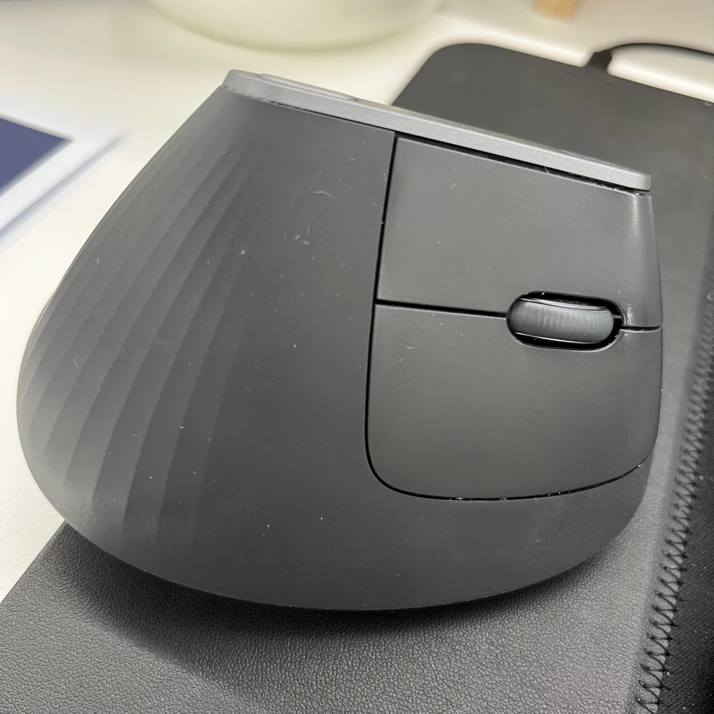 마우스를 쥔 모습이다. 참고로 MX 버티컬은 크기가 꽤 큰 편이다. 따라서 손이 작은 사람은 사용하기 불편할 수 있다.
