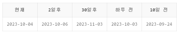 즉, +1은 1일 뒤를 나타내고 -3은 3일 전을 나타낸다.