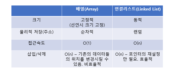 또한 배열은 배열이 꽉 차 있을 경우 메모리를 재할당해야 하거나 최악의 경우에는 삽입이 불가능 할 수 있다.