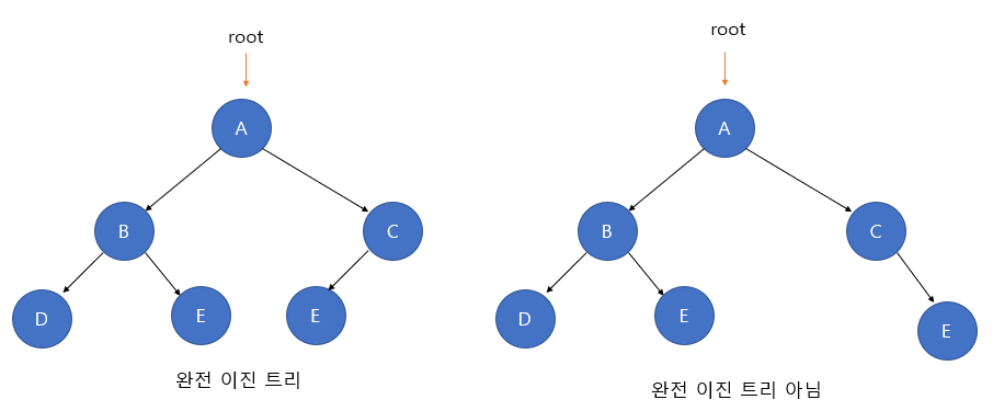2) 마지막 레벨은 꽉 차 있지 않아도 되지만, 노드가 왼쪽에서 오른쪽으로 채워져야 한다.
