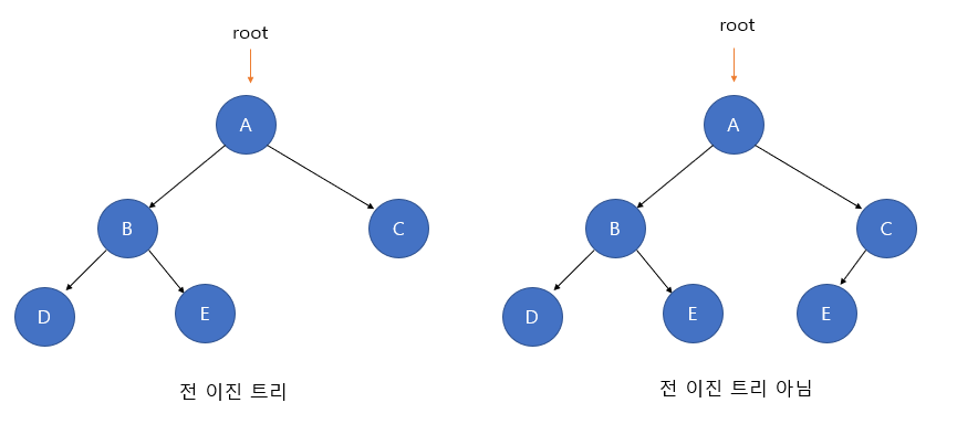2) 전 이진트리의 성질도 만족해야 한다. 즉 모든 노드가 0개 혹은 2개의 자식 노드를 갖는다.