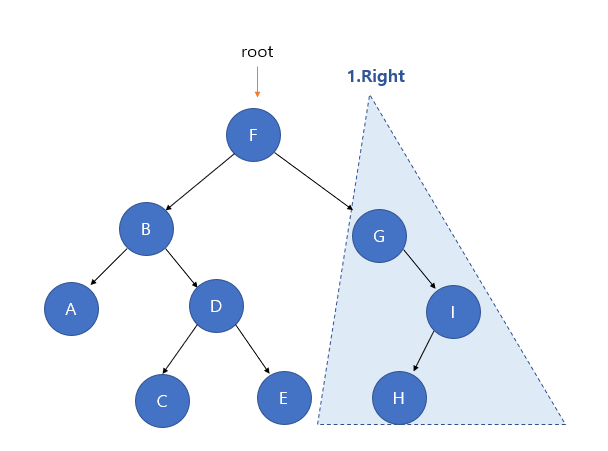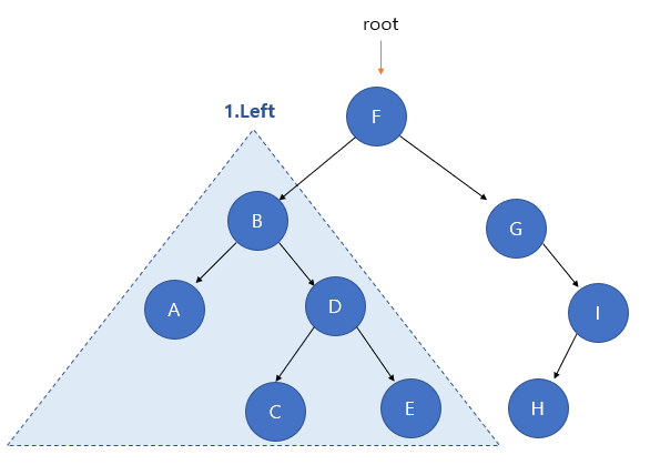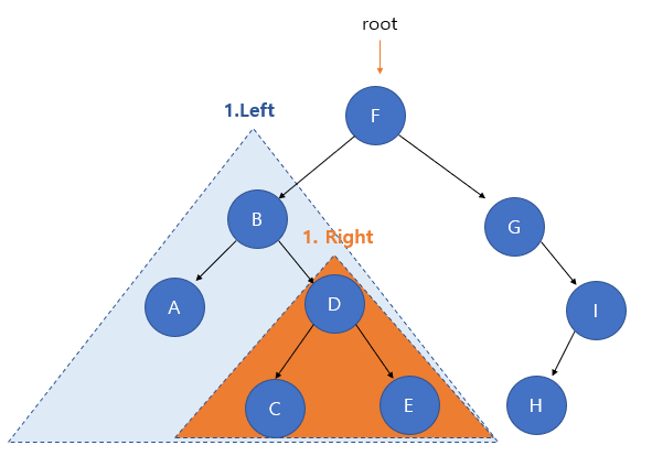 1. F의 왼쪽 서브트리 탐색