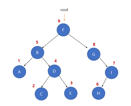 출력 : F B A D C E G I H