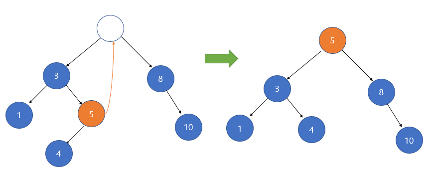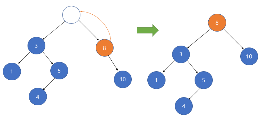 위와 같이 삭제할 노드의 오른쪽 서브 트리에서 가장 작은 자손을 해당 노드의 자리에 올리면, 이진 탐색 트리의 조건을 만족하면서 트리가 유지되는 것을 확인할 수 있다. 또한 자리를 옮기면서 다른 노드들(10번노드)도 자리가 적절히 이동한 것을 확인 할 수 있다.