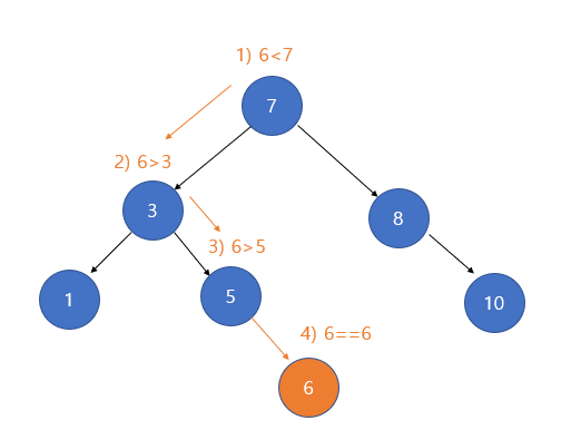 이진 탐색 트리의 탐색은 다음과 같은 과정을 거친다.