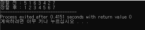 위와 같은 과정을 거치면 배열이 위와 같이 오름차순으로 정렬된다.