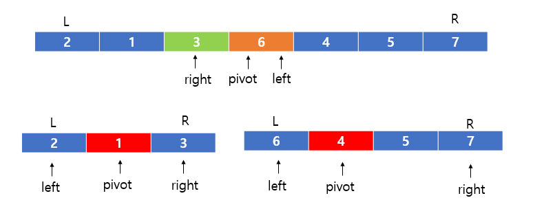 - left가 R보다 작다면 left부터 R까지 다시 위 과정을 재귀적으로 반복한다.