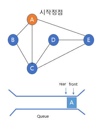 A노드는 이미 방문했으므로 방문하지 않고 큐에 넣지 않는다.